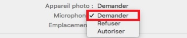 - Microphone : Cliquez sur le bouton « Demander », le site web peut alors utiliser votre microphone